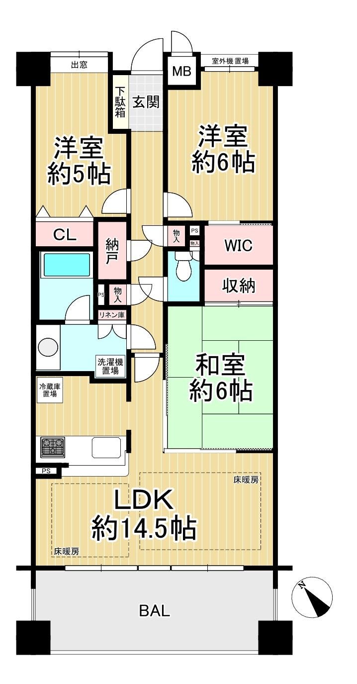 | 主要採光 | 南西向 | バルコニー | 南西向12.10㎡ |